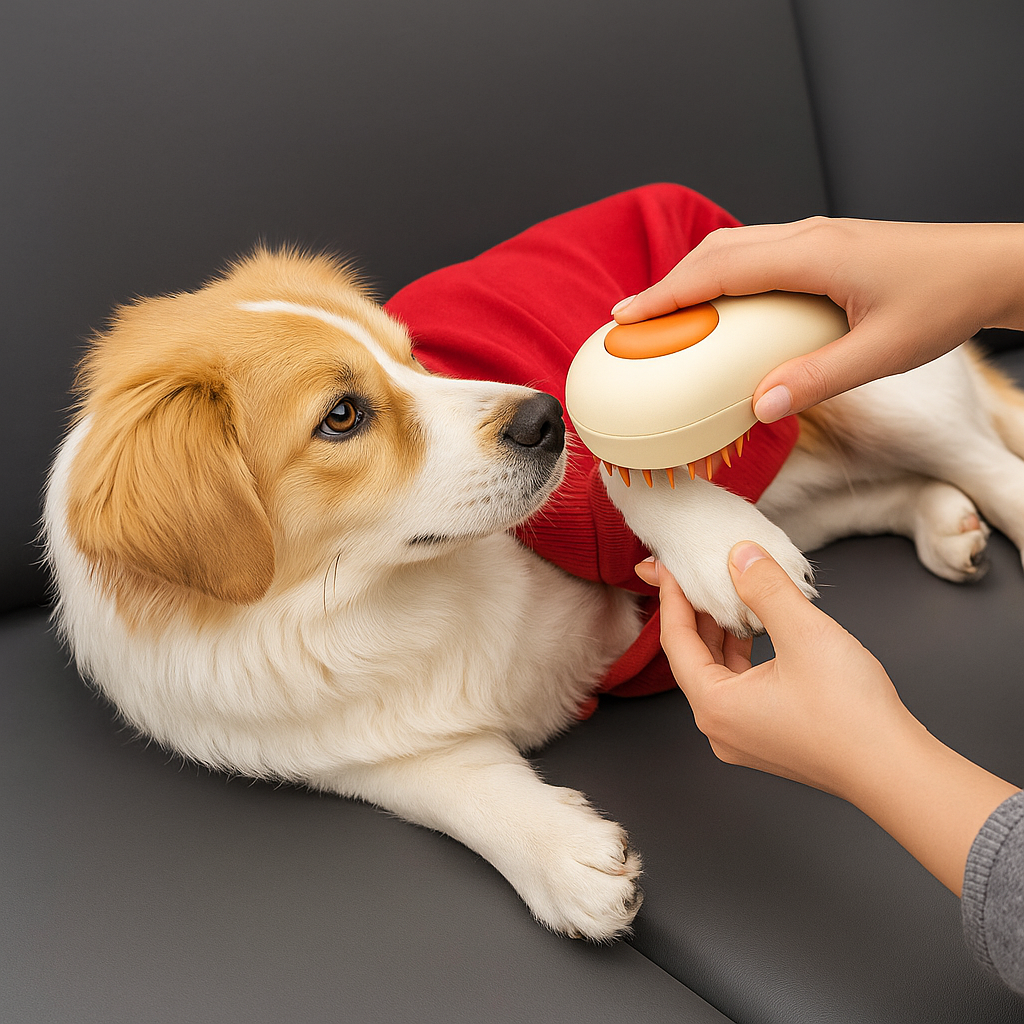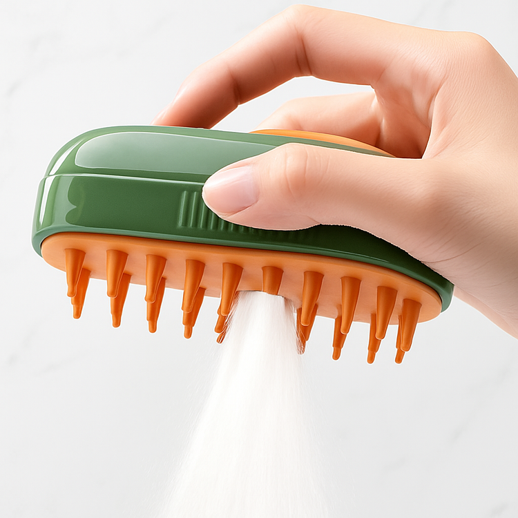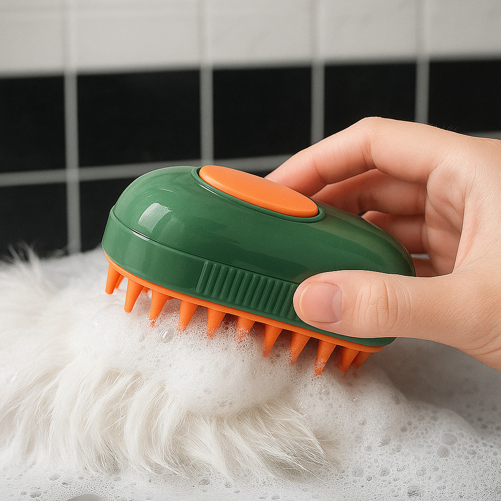 המברשת משחררת אדים בלחיצה, שמרככים את הפרווה ומעניקים ניקוי עמוק וסירוק נעים ויעיל. אידיאלית לפרווה מלוכלכת, יבשה או סבוכה. עמידה למים ומתאימה לשימוש גם במהלך מקלחת לטיפוח נוח ומלא.